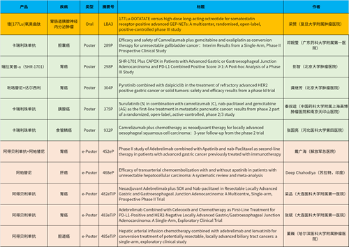 在消化系统肿瘤领域,DB电竞产品相关研究共入选1项最新突破性摘要(LBA)、5项壁报和5项电子壁报,共11项研究。其中阿得贝利单抗入选4项研究、卡瑞利珠单抗入选3项研究。